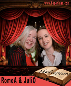 Das Duo – bestehend aus Daniela Bosenius (Gesang, Cello, Klavier) und Ruth Forschbach (Schriftstellerin und Lyrikerin) – wagen eine andere Annäherung an Shakespeares berühmte Geschichte der verbotenen Liebe, die in der Tragödie endet und die Familien versöhnt.. Sie greifen virtuos einzelne Momente aus dem Leben des legendären Paares heraus und interpretieren sie neu: leichtfüßig, ironisch, dramatisch, poetisch. Gesang und Wort verschränken sich, lyrische Bilder treffen auf klingende Saiten, Liebesträume auf den nüchternen Blick hinter die Kulissen menschlicher Dramen. Denn alles beginnt mit Feindschaft – und endet doch in Liebe. Oder besser: mittendrin.